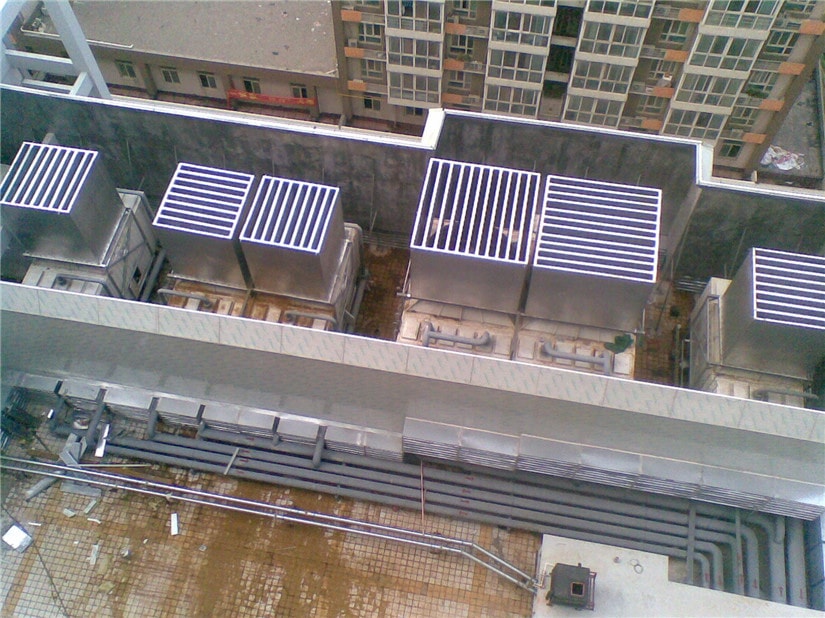 項目簡介:本項目中需要治理的設備為6臺RT橫流式冷卻塔系統和3組風冷渦旋機組。冷卻塔型號分別是RT-250U/DB  RT-500/MB  RT-1000/MB型 .聲源距離敏感點30米左右。敏感點為高層住宅小區。